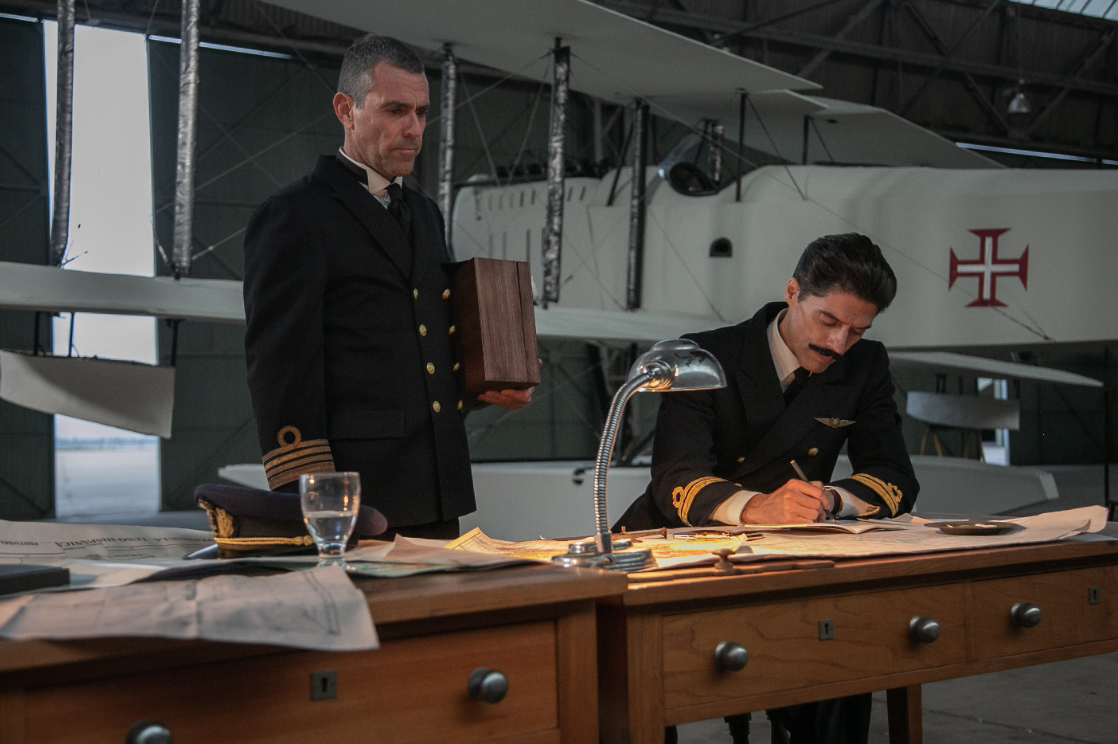 “A Travessia” é uma série de ficção histórica sobre a primeira travessia aérea do Atlântico Sul, quando os pioneiros da aviação portuguesa, Carlos Gago Coutinho e Artur de Sacadura Cabral, atravessavam o oceano Atlântico pela primeira vez na história.